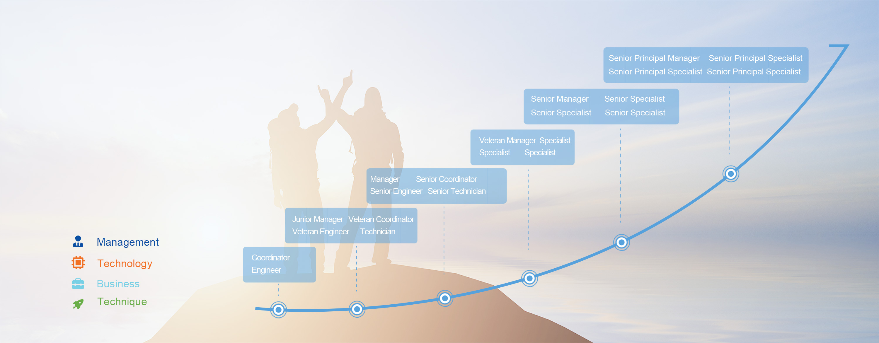 According to company business development strategy and talents value, WEIFU provides multiple development channels and 4 career directions, including management, technology, business and skill for staff who has various potentials and work interests.